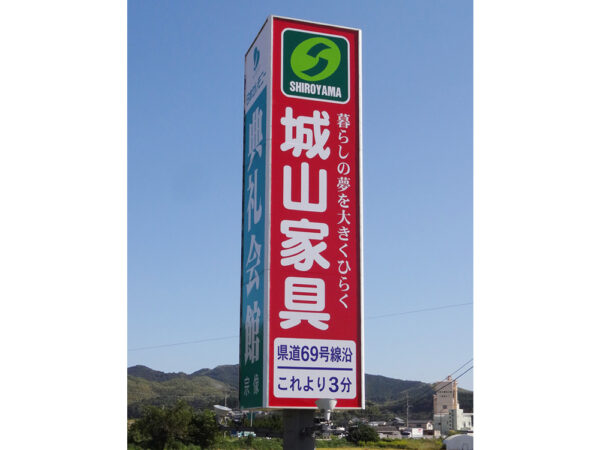 宗像市石丸に設置しております回転広告塔の、城山家具様の看板面をリニューアル致しました。